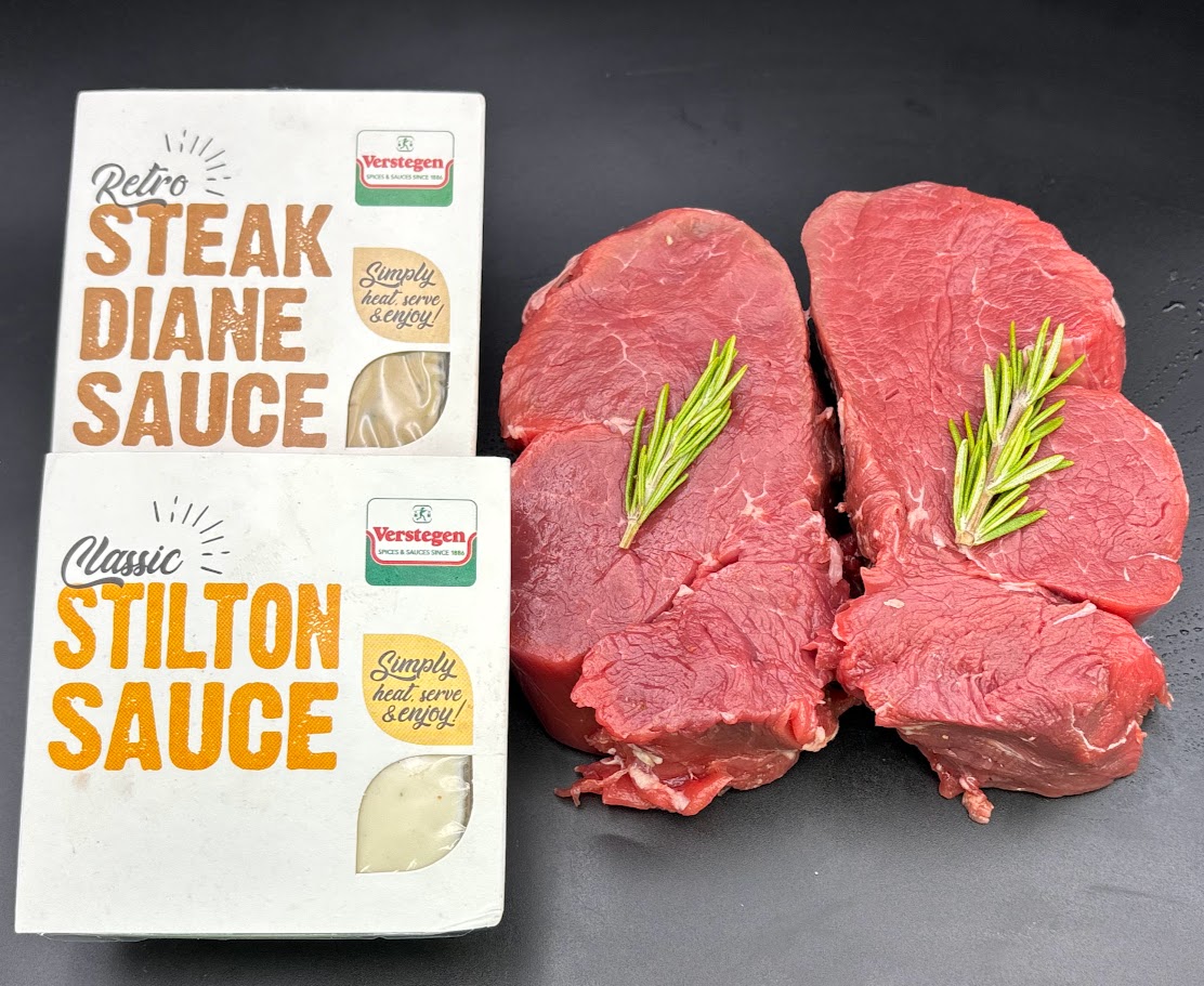 Treat Your Loved One This Valentines Day, 2 8oz Fillet Steaks with 2 Steak Sauces