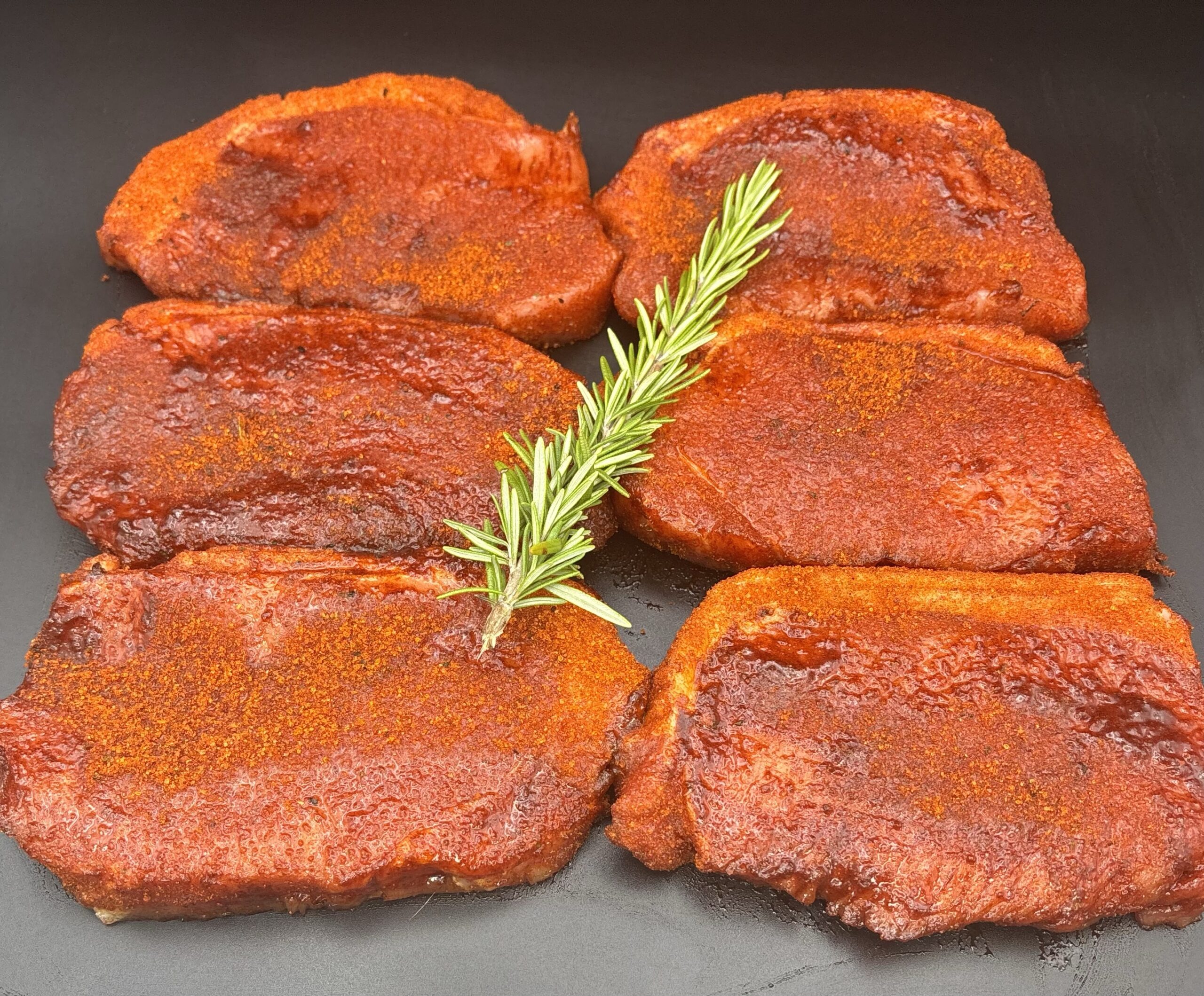 If you’re looking for the tenderest pork, then look no further! Our Smokey BBQ flavoured Pork Loin steaks are fantastic on either the bbq, grill, fry or even in the oven! They come in packs of 6 for a tasty, quick and easy meal