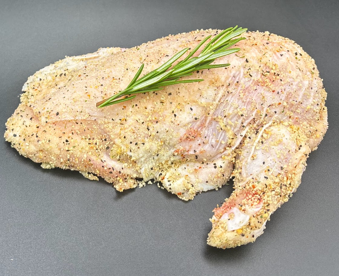 Fresh Chicken Supreme, the skin is left on and the small wing bone. Add one of our marinades to make it extra special