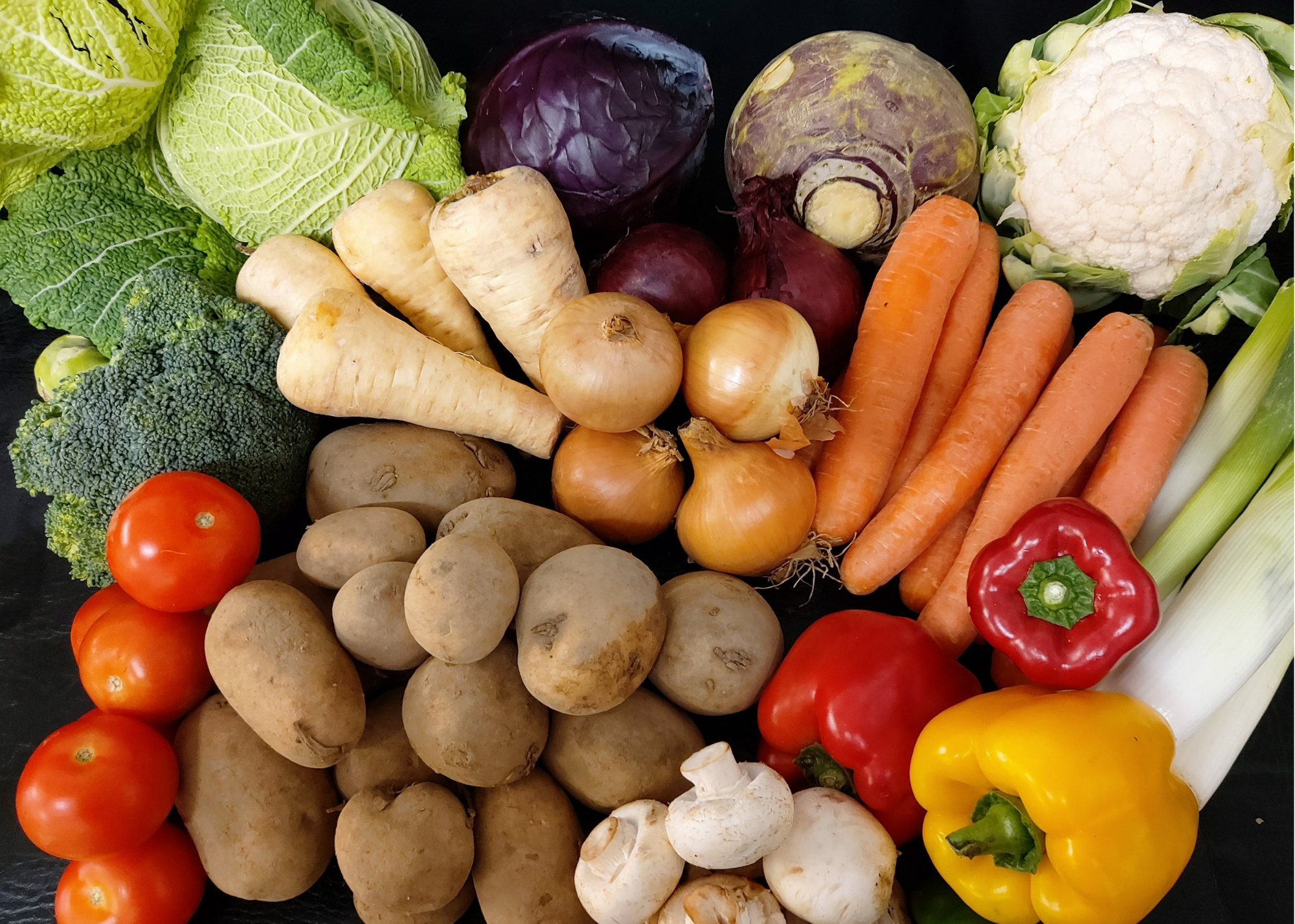 Set Vegetable Box, Packed with a variety Of Seasonal Vegetables. What’s in the picture is typically what’s in the vegetable box, items will change depending on vegetable availability over the seasons. (these are sold as a set box we can’t make individual boxes to requirements .